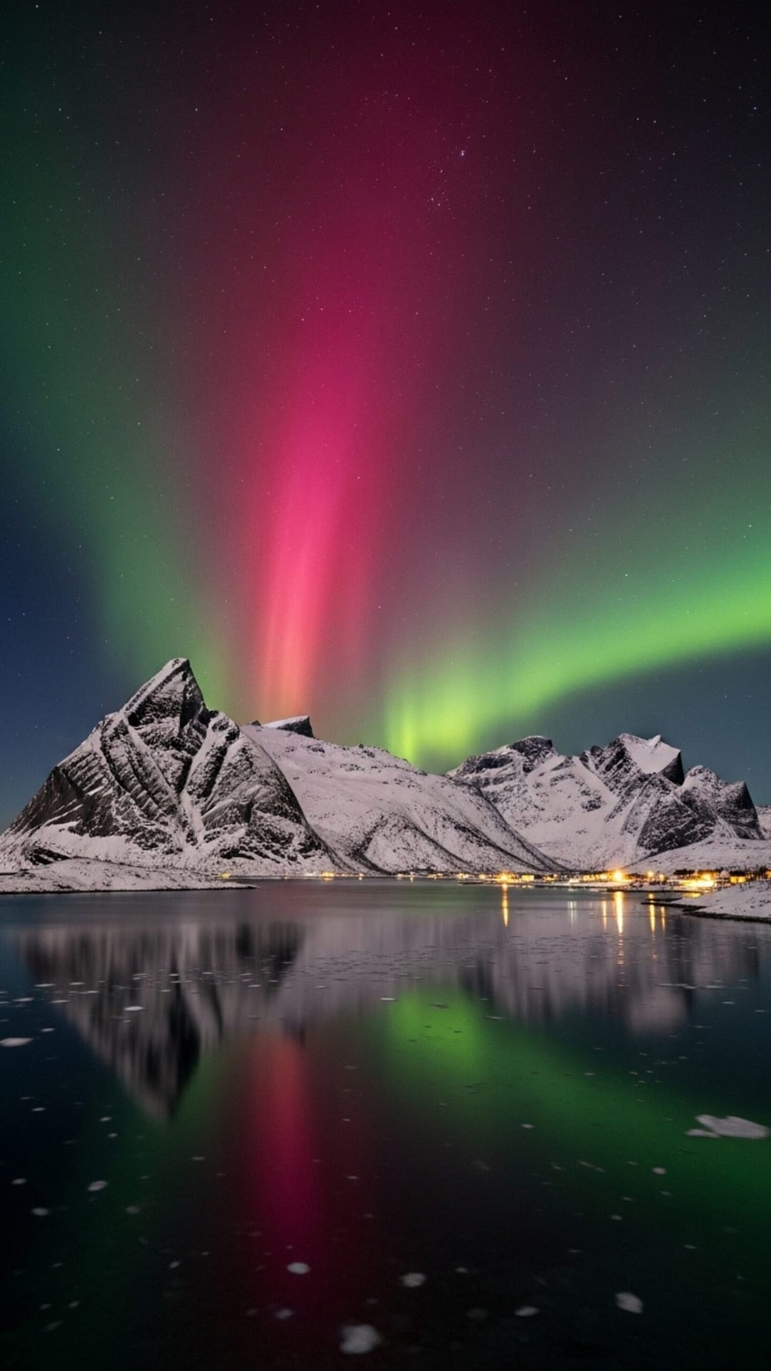 This image has been meticulously captured to ensure maximum impact and visual fidelity. The rich colors of the aurora are rendered with stunning clarity, and the intricate details of the snow and mountains are beautifully preserved. It’s a high-quality image that will retain its vibrancy and impact on any device.